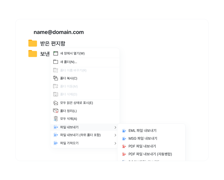 아웃룩 메일을 안전하게 백업하거나,다른 메일 서비스의 메일을 아웃룩으로 손쉽게 옮길 수 있어요.