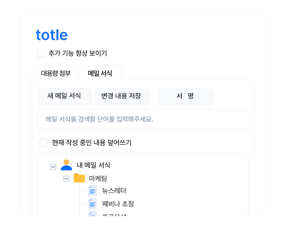 자주 쓰는 메일을 서식으로 저장해 활용해보세요.매번 작성할 필요 없이 클릭 한 번으로 완벽한 메일이 완성됩니다.
